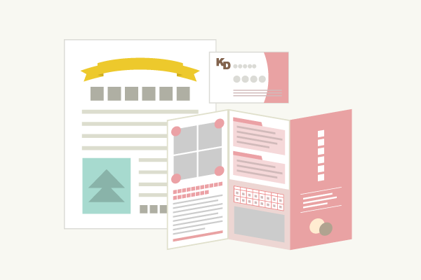 名刺・チラシ・パンフレットやリーフレットなど紙媒体のデザイン制作。